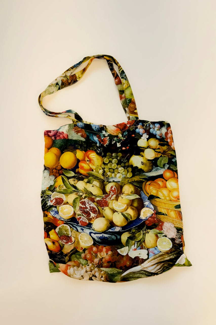 Our tote is perfect for a day at the beach or the farmers market in our house designed Harvest Print . There is an internal side pocket to help you stay a little organized. 100% cotton with a cotton inside pocket. Fair trade made in India
